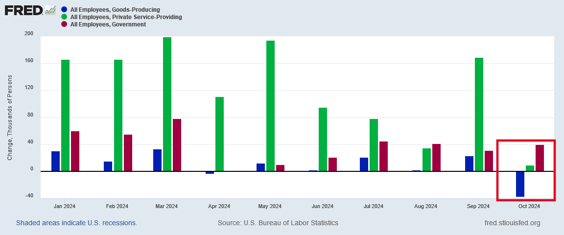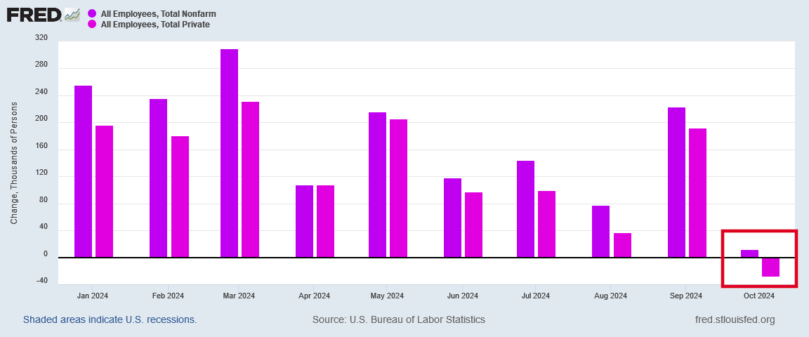 Boeing and Hurricanes Helene and Milton have certainly been bad news for jobs in the United States, but they are merely the latest blow to employment this country has endured. They are by no means the full explanation for the dumpster fire of employment reported by the BLS for October.