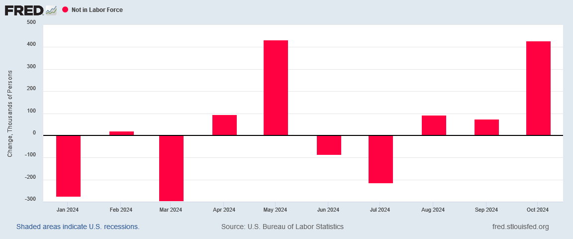 While the unemployment rate did not change, there were 428,000 workers who exited the labor force in October.