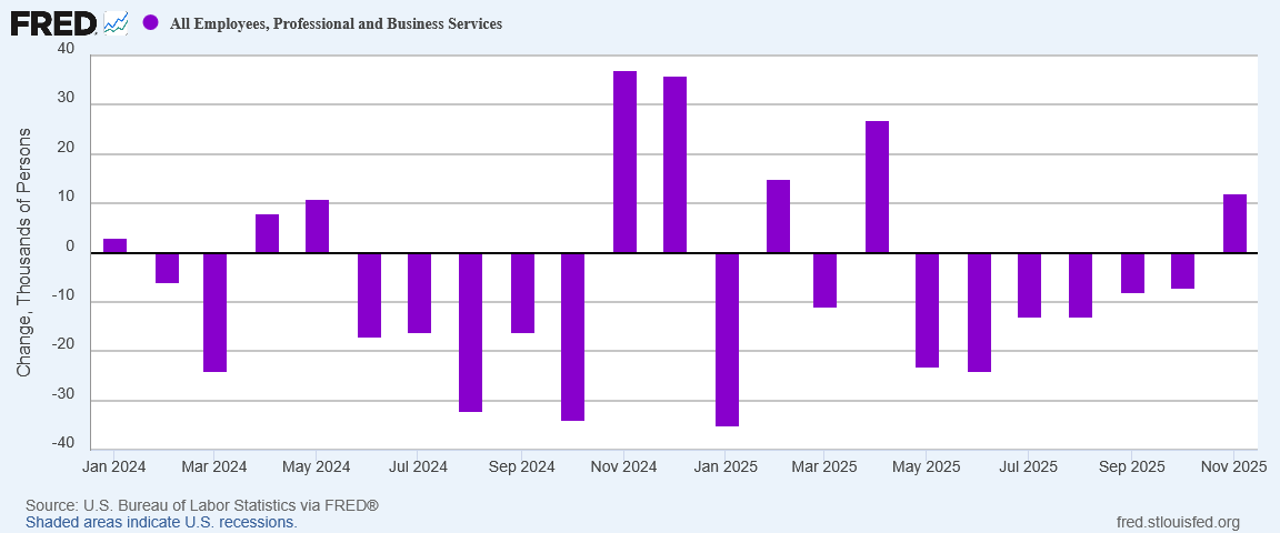 One notable turnaround in November was Professional Services, which notched the first month of job growth since April.