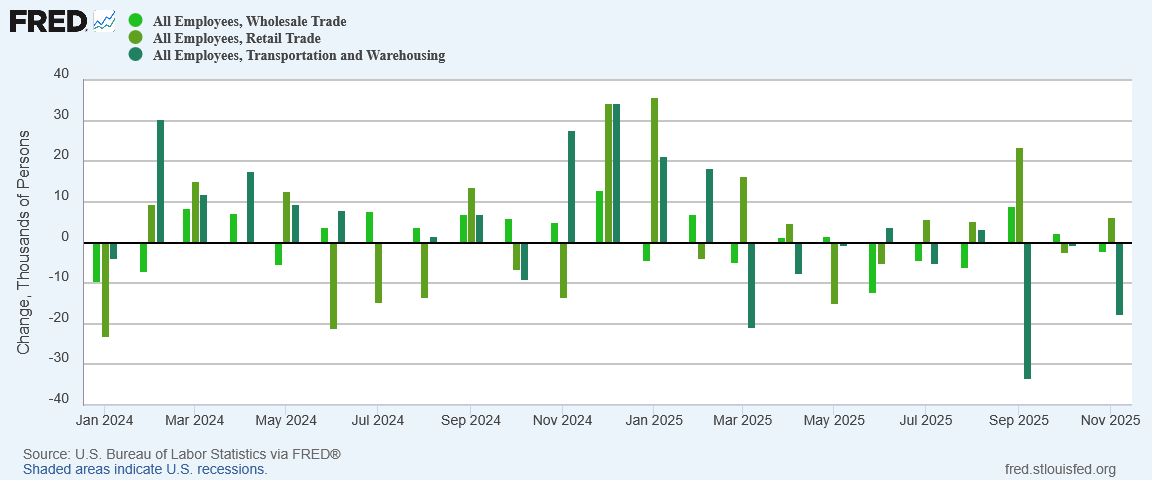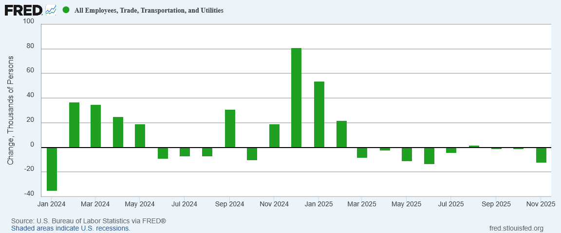 Among service sectors, Trade, Transportation, and Utilities also continued to shed jobs in November.