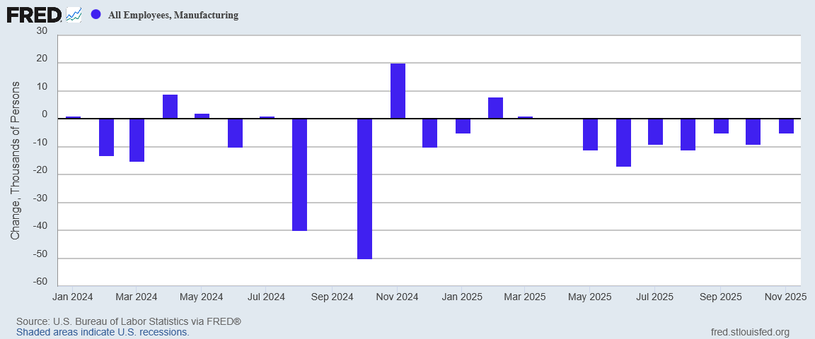 Yet the data we have at present does not support such a belief. All of Karoline Leavitt’s power and poise at the Press Secretary’s podium cannot turn negative economic data into good, and the November Employment Situation Summary is yet another litany of negative economic data—negative jobs data. The data we have at present shows no sign that these downward employment trends are likely to reverse any time soon.