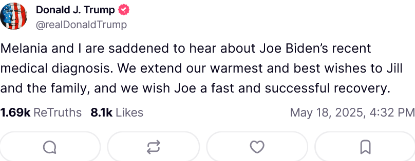 President Trump, upon hearing the news, issued a brief statement on Truth Social.