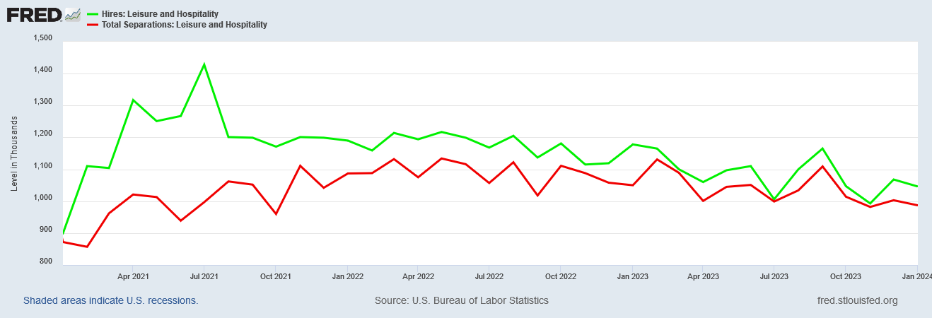 Separations declining notionally suggests employment itself is strengthening, and so is the job market.