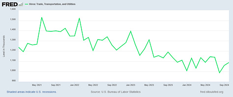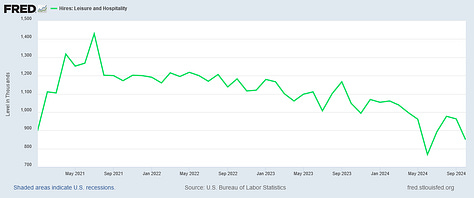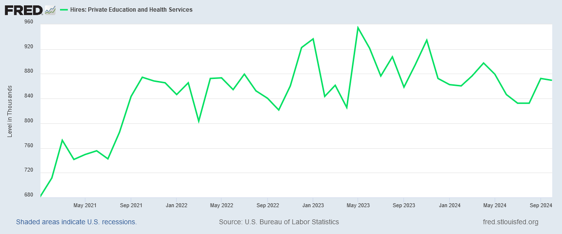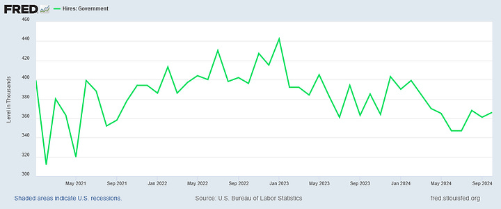 That is it. That is the only economic sector posting a rise in hiring since 2021. Even the government has been hiring fewer and fewer workers each month going back to at least the start of 2022.