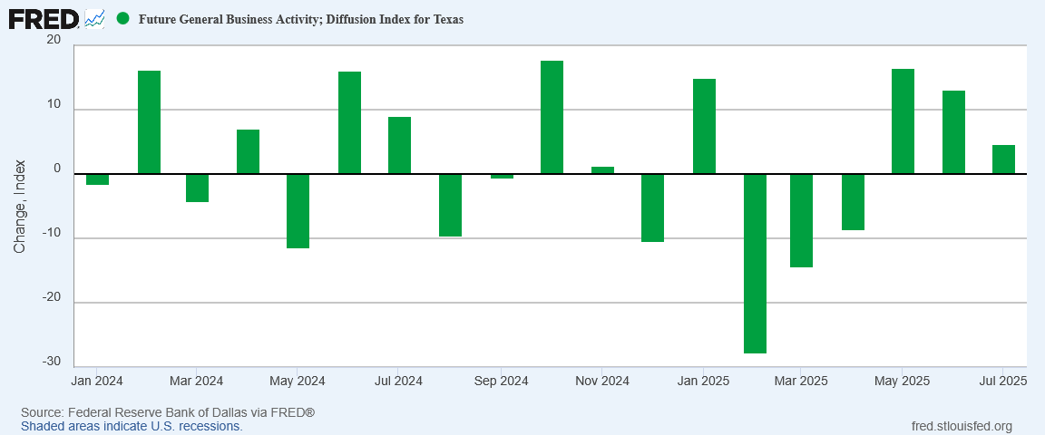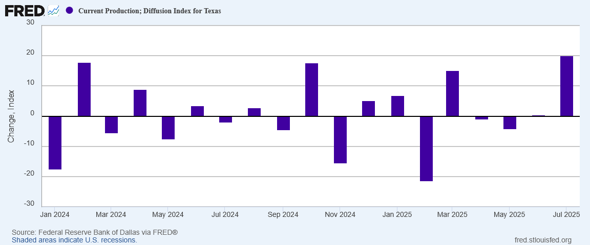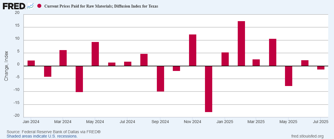 What is most encouraging is that, despite months of corporate media histrionics about how tariffs will cause rampant inflation, the Dallas Fed found Texas producers have lower raw materials prices.