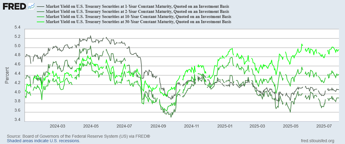 Treasury yields have not done any better, and the far end of the yield curve has even risen somewhat.