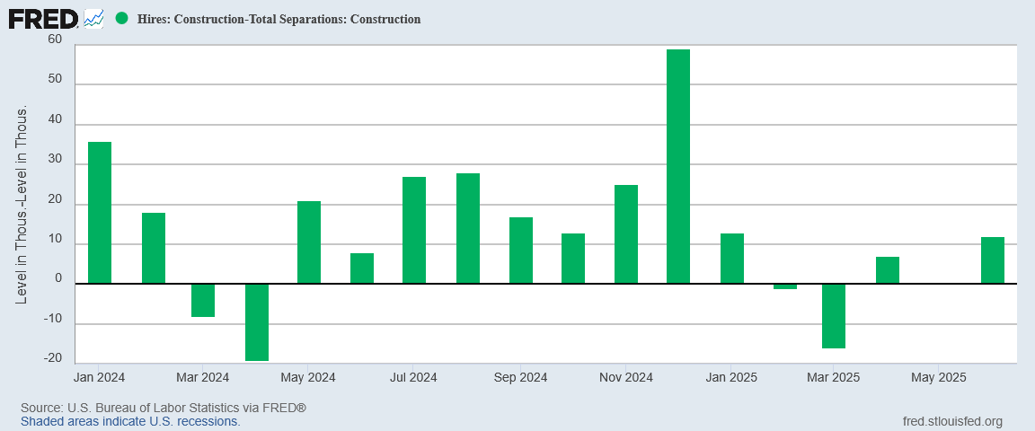 Still, net hiring for construction in the first half of 2025 is demonstrably weaker than it was for all of 2024.