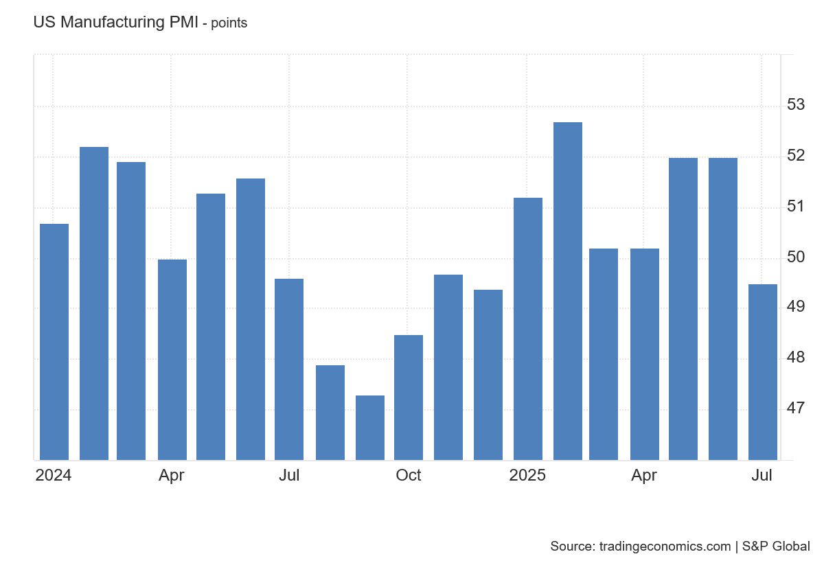 Manufacturing overall in the United States fell into contraction for July, according to the S&P Global Purchasing Manager’s Index.