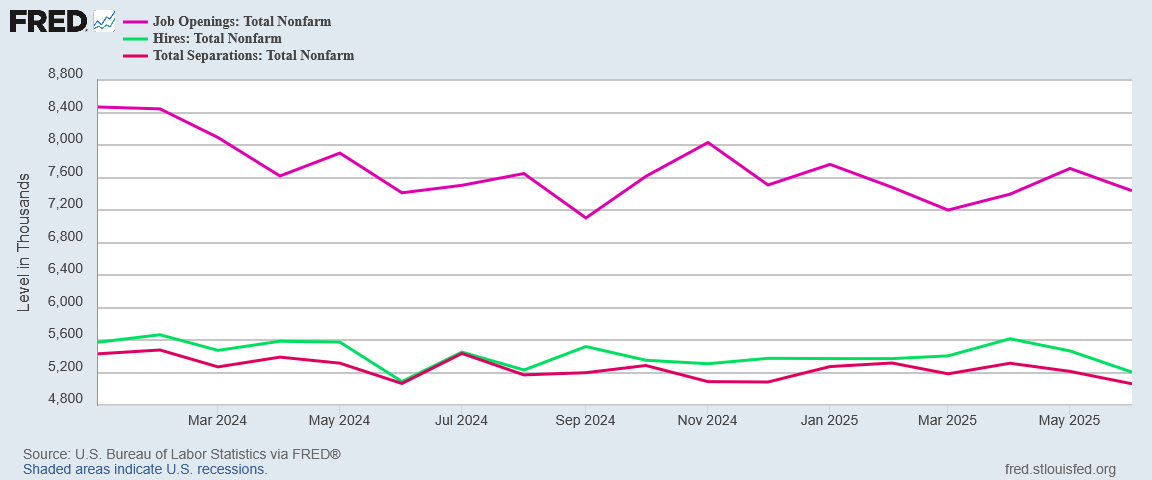 Declining job openings, declining hires, and declining separations are the data reality the June JOLTS report, but you would not know it reading the reports introduction.