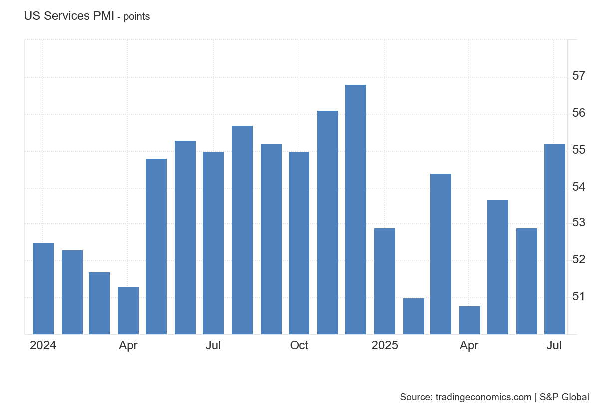 Services, on the other hand, saw an increase in expansion in July, according to the Services PMI.