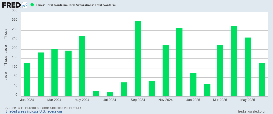 Unsurprisingly, those numbers mean that net hiring slowed by almost half—from 252,000 to 144,000.
