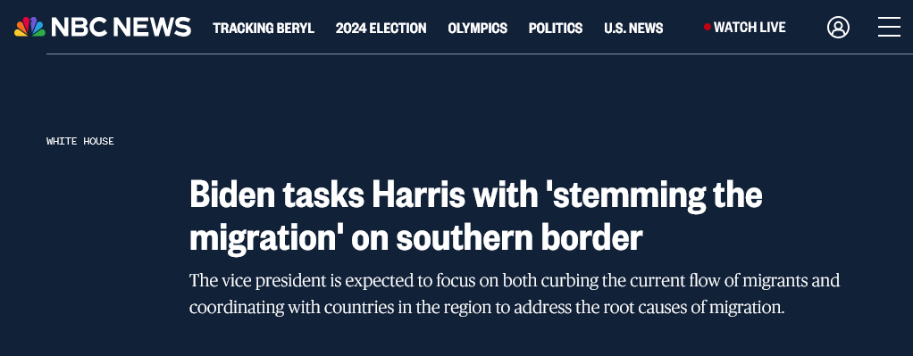 The lead paragraph in that story indicated that Harris would be handling at least two different parts of the immigration issue and the Administration’s response.