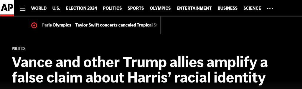 To corporate media, this is tantamount to JD Vance “amplifying” Donald Trump’s prior answer to a question posed by Rachel Scott at the National Association of Black Journalists Convention.