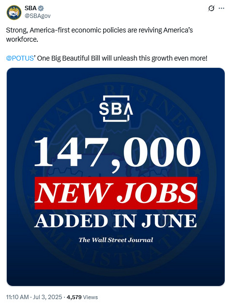 All spin and social media posting aside, the June Employment Situation Summary does not show the US economy doing well.