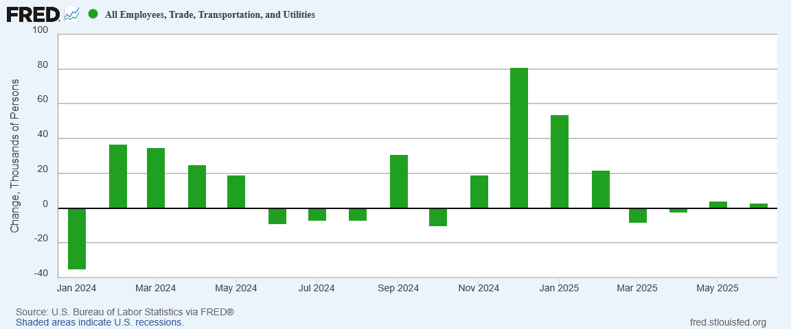 At the same time, Trade, Transportation, and Utilities—a mainstay of service-sector employment, continues to show anemic, almost non-existent job growth.