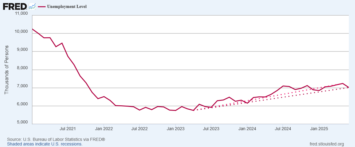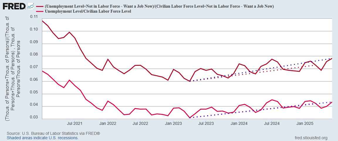 Moreover, the raw unadjusted data shows an increase in the unemployment level, as well as a rise in the “real” unemployment rate (where those not in the labor force but who want a job now are included).