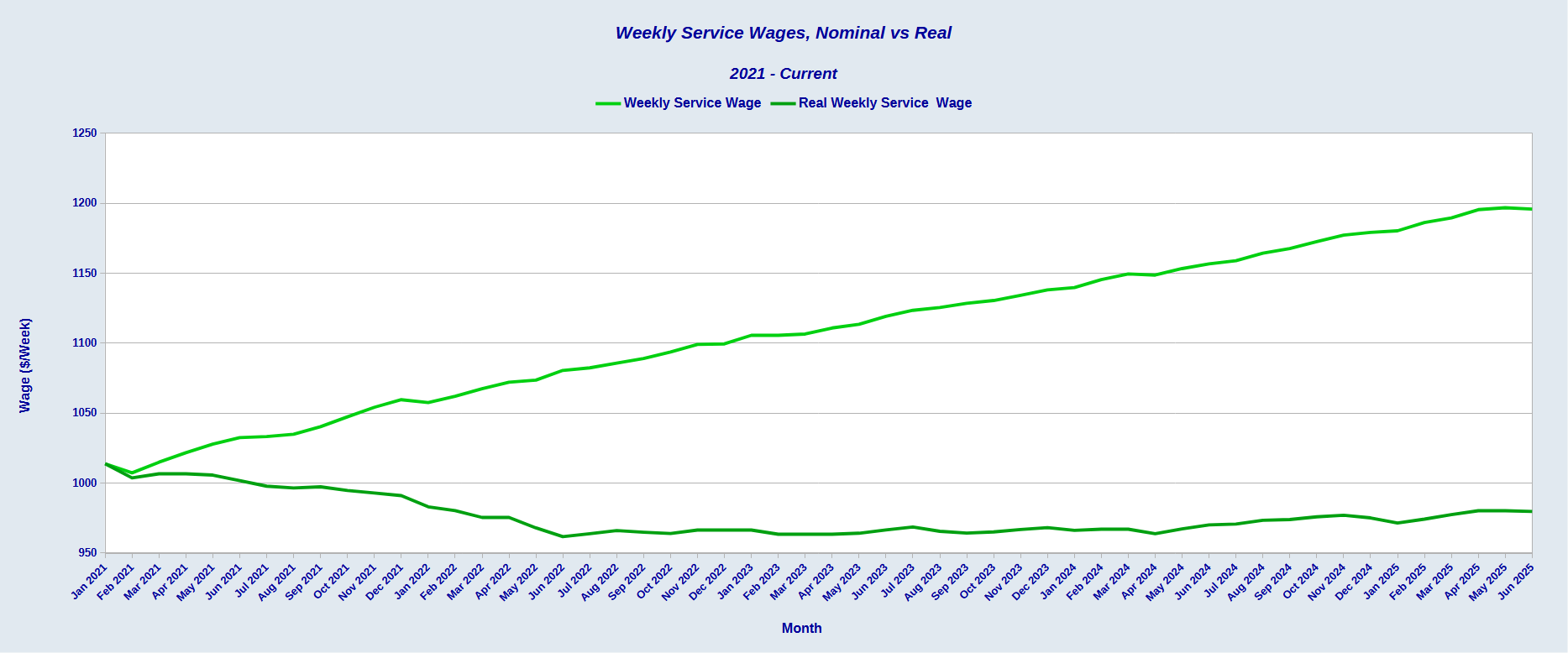 The decline in hours worked, however, means that both nominal and real weekly service wages fell in June.