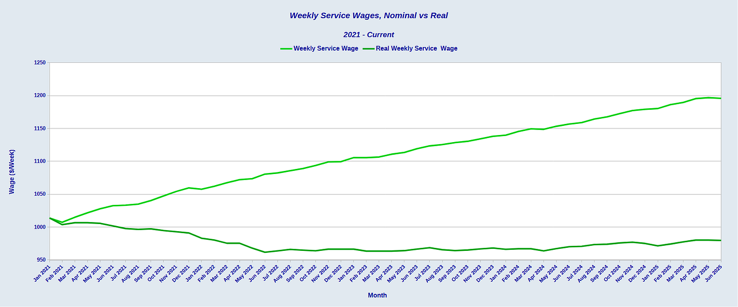 The June jobs report not only shows no improvement in this, it shows service workers in particular are still losing ground to inflation.
