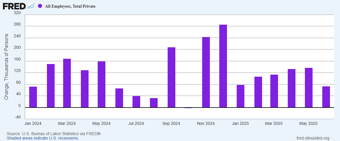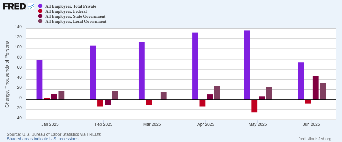 Such are the private-sector results when fully half of the jobs created in June were state and local government jobs.