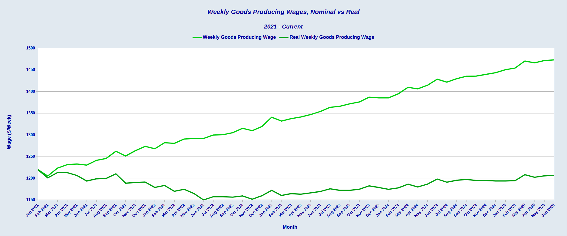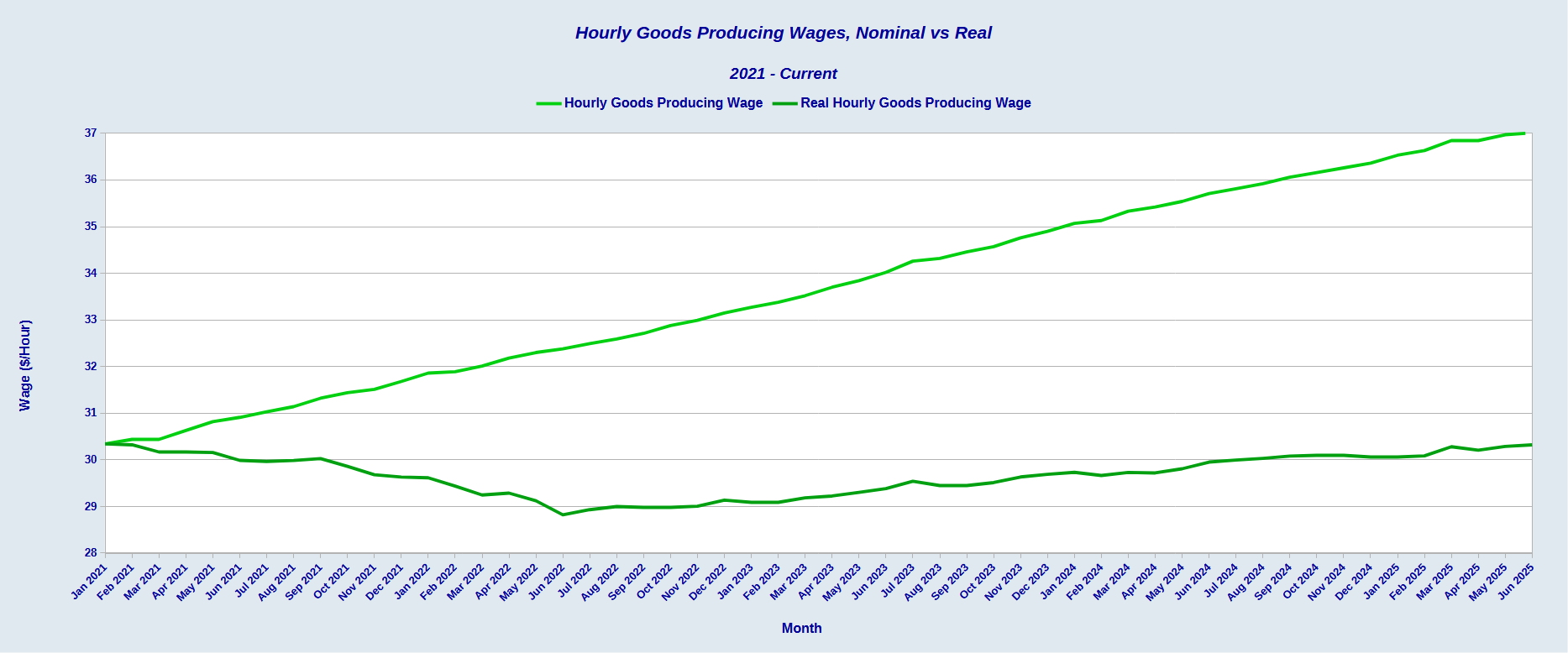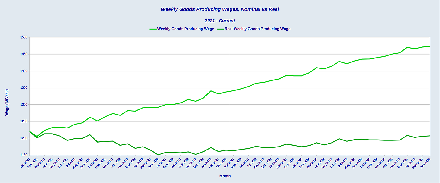 However, that recovery falls short when we step back and look at real weekly goods producing wages.