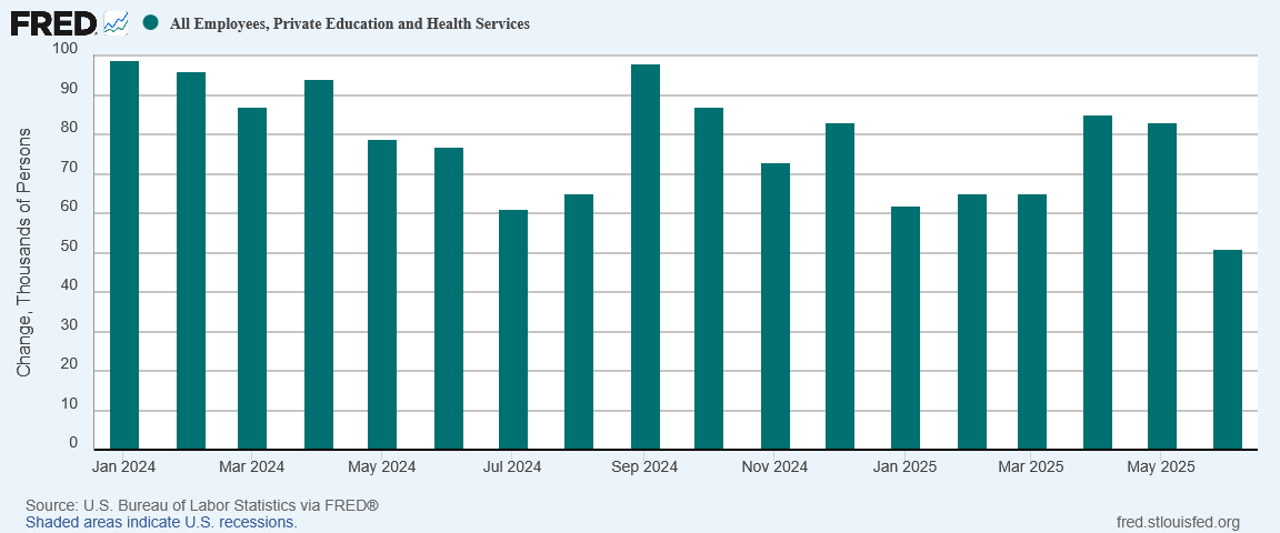 Even Private Education and Health Services, which has carried the BLS report for the past few reporting cycles, showed significantly weaker growth.