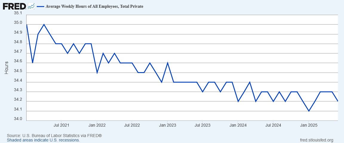 Adding to the poor job growth data is a decline in average hours worked.