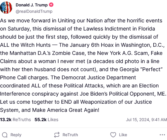 Unsurprisingly, Donald Trump celebrated the ruling with his usual Trumpian post on Truth Social: