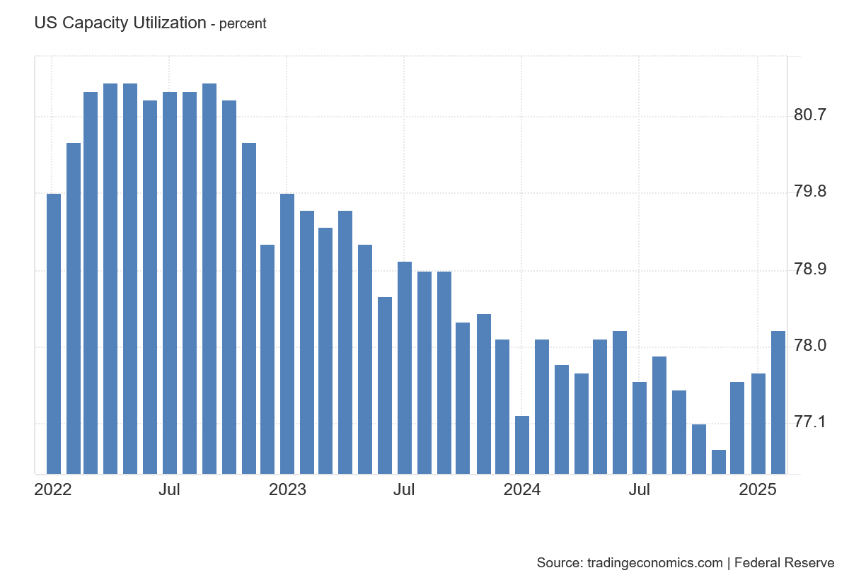 At the same time, the Federal Reserve also reported an increase in plant capacity utilization, rising to 78.2%.