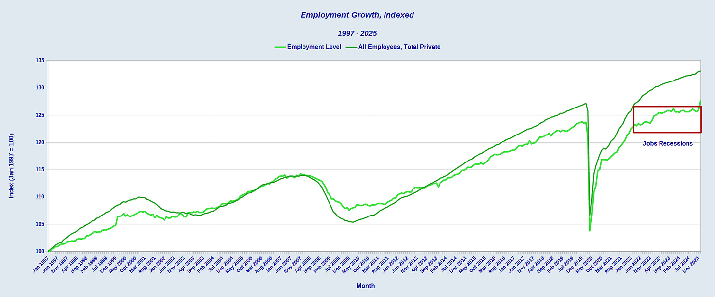 The first such “jobs recession” occurred during the summer of 2022. The second began in the fall of 2023 and is ongoing.