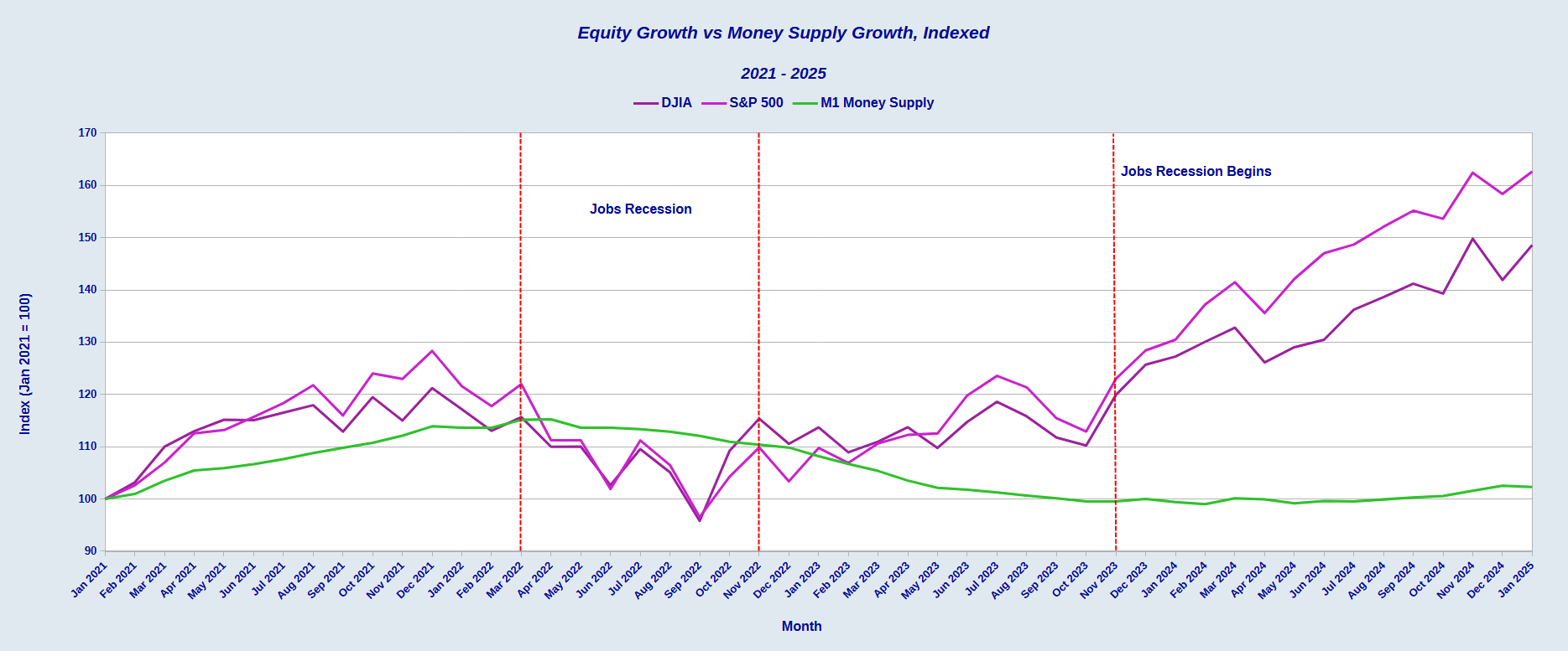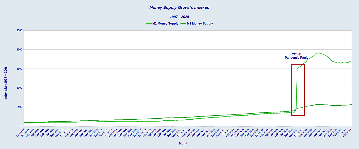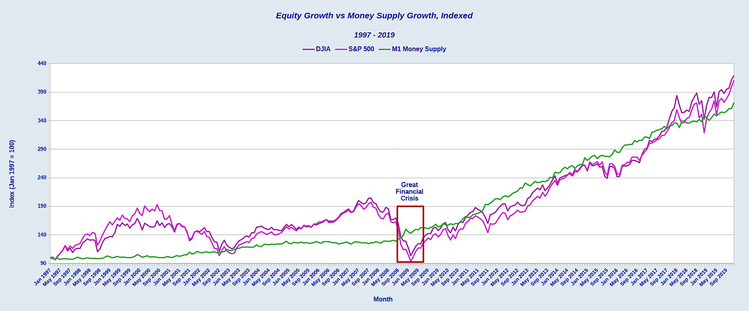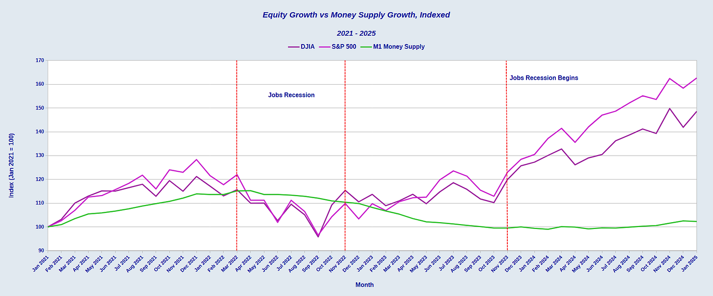 Only during Donald Trump’s first term did we see stock prices rise by more than the money supply expansion.