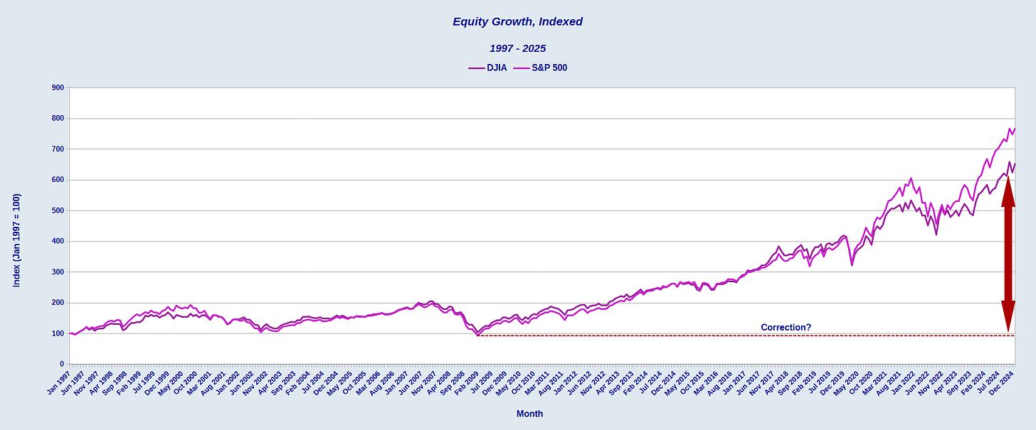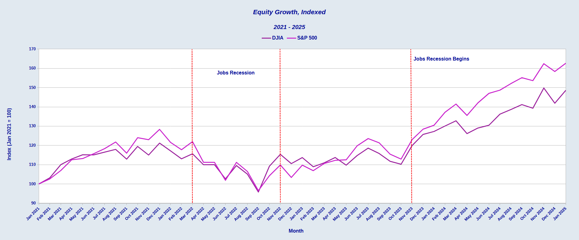 Yet while the economy has not been doing at all well with respect to Main Street, Wall Street was doing well up until the start of 2025. Then equities started moving down, and while they have gone up and down, the overall trend is not a good one.
