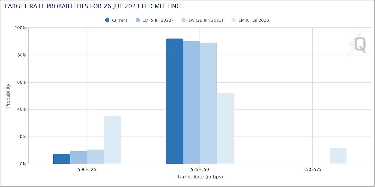Wall Street also continues to price in a high probability of a 25bps rate hike later this month.