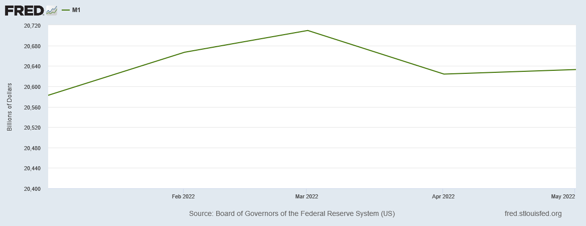 To be clear, there has been very modest decreases in the M1 money supply recently: