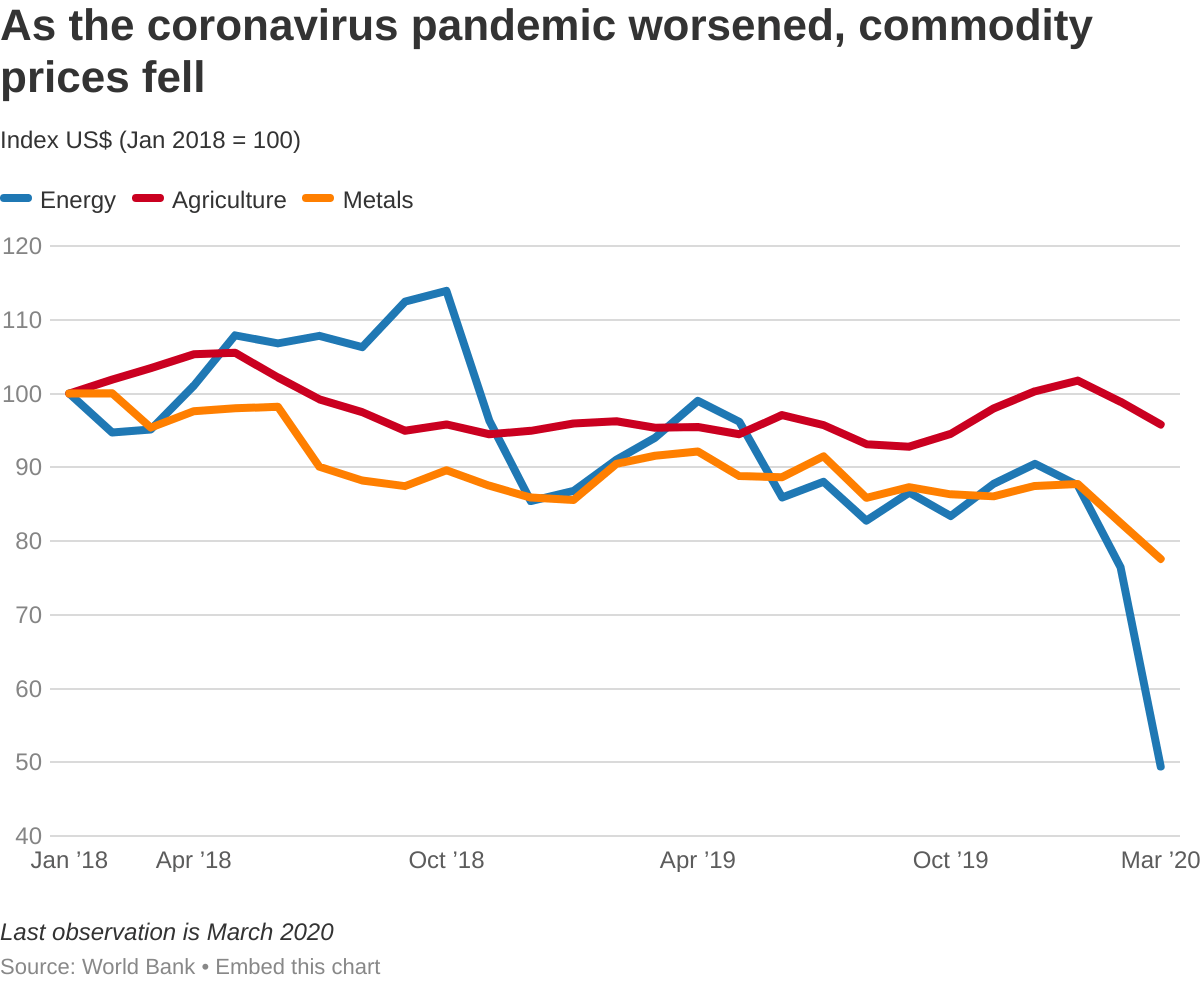Agricultural commodities changed less—after all, even in lockdown people still need to eat!