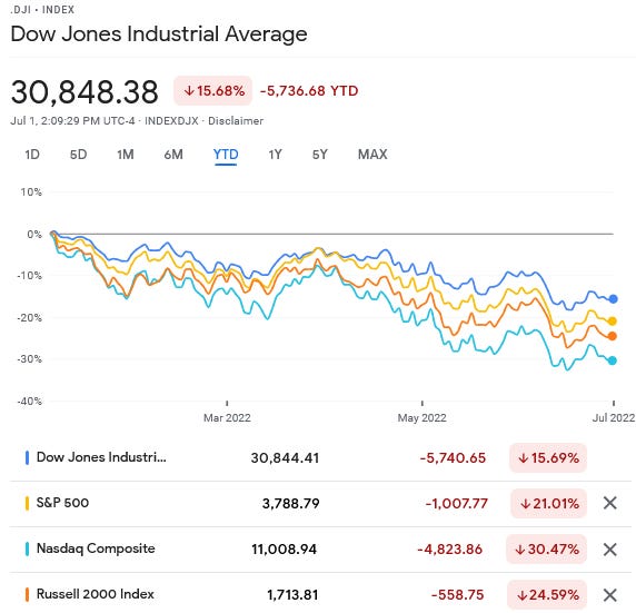 And there have been not quite so modest decreases in US stock indices:
