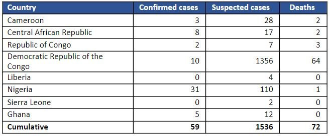 In the WHO’s most recent Disease Outbreak News bulletin on the global monkeypox outbreak, there are a total of 59 confirmed cases and 1,536 suspected cases of monkeypox within 8 countries in West and Central Africa, along with 72 deaths.