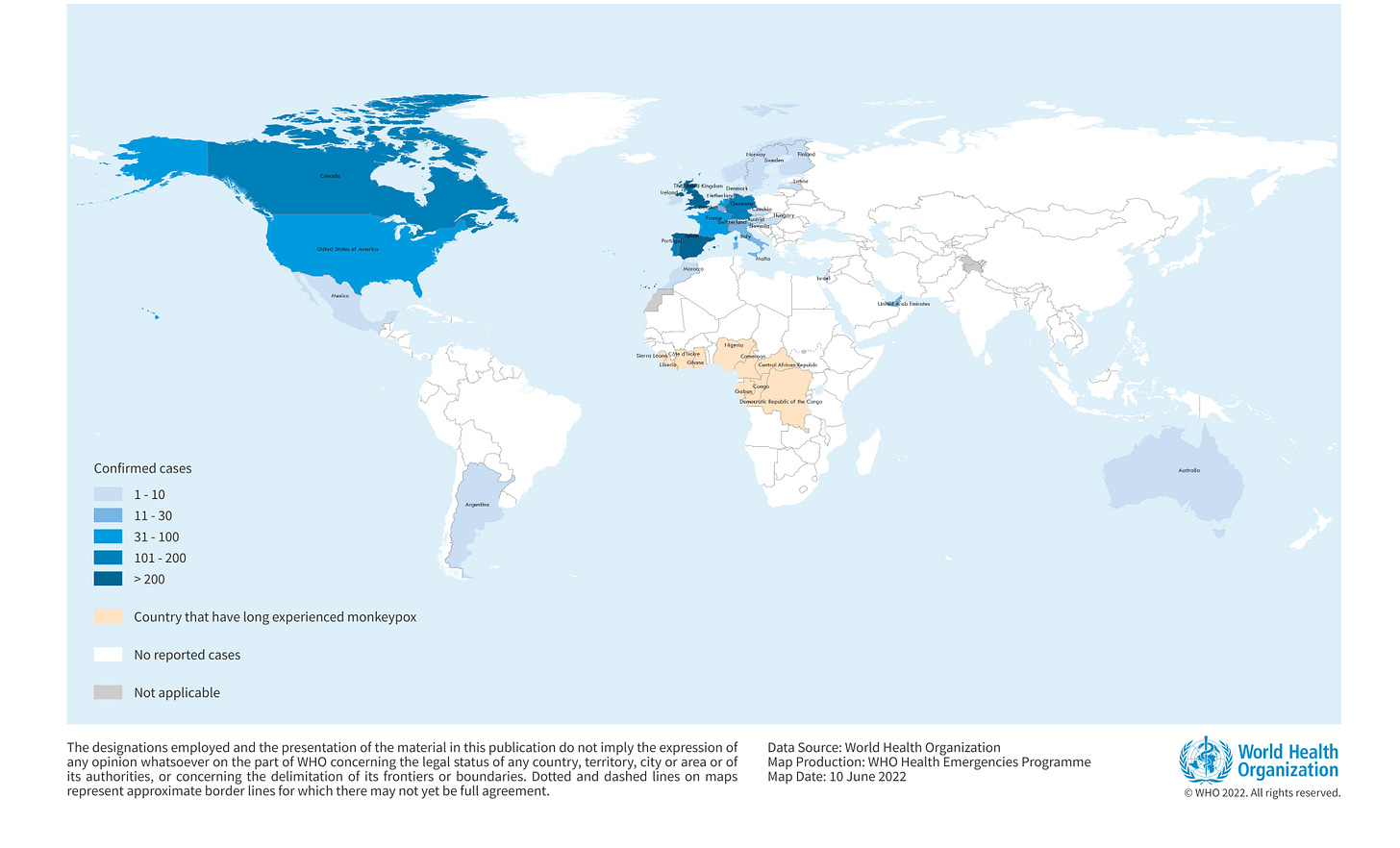 As of June 13, there were more cases of monkeypox outside of Africa than within Africa, over a span of weeks rather than months.
