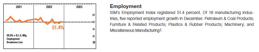 ISM Employment index for the manufacturing sector showed growth—from 48.4 to 51.4.