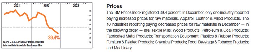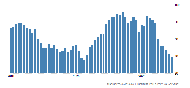 When businesses aren’t taking new orders, they aren’t doing new business. When businesses aren’t doing new business, the economy is not growing, but contracting. When the economy is contracting and business activity is less, prices should at least be steady if not declining.