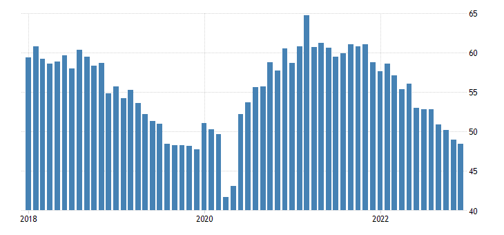 Moreover, new orders for both manufacturing and service businesses are on the decline.