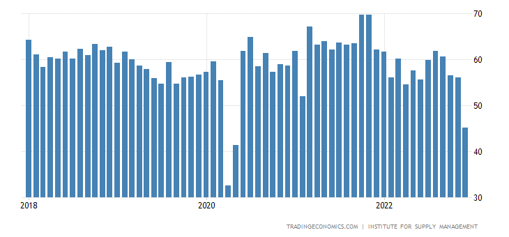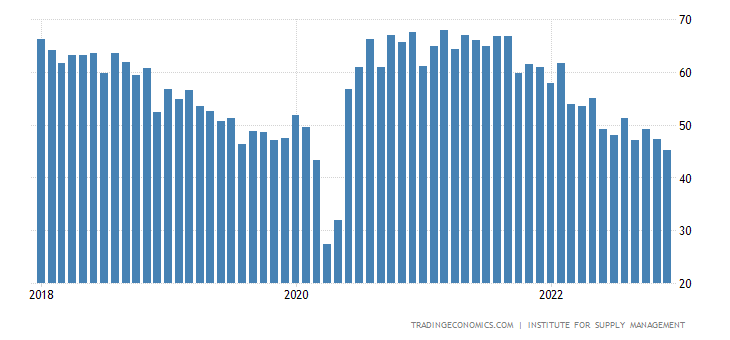 Yet according to the ISM, manufacturing in the United States has been slowing and then contracting throughout the year.