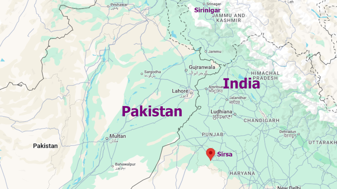Among the sites which are claiming attack by Pakistan is Sirsa, Harayna—farther south from Kashmir than even Amritsar—where a video claiming to be of a drone or missile attack was uploaded to X.