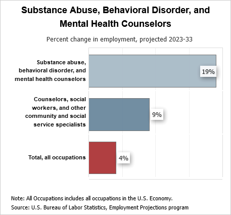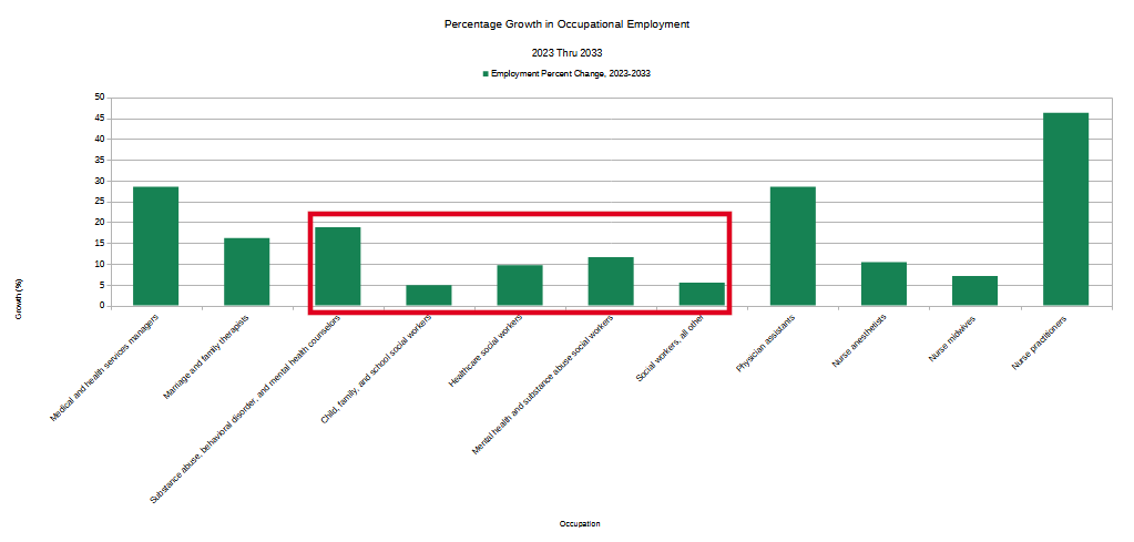 Health care overall is a growing employment area, but within health care mental health is growing relatively slowly.