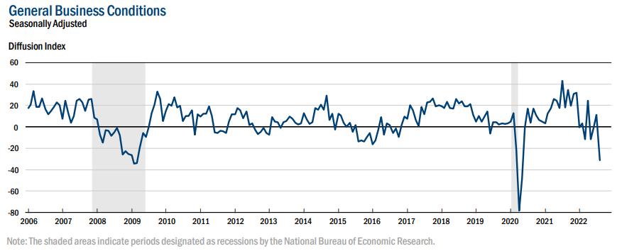 general business conditions index plummeted forty-two points to -31.3.