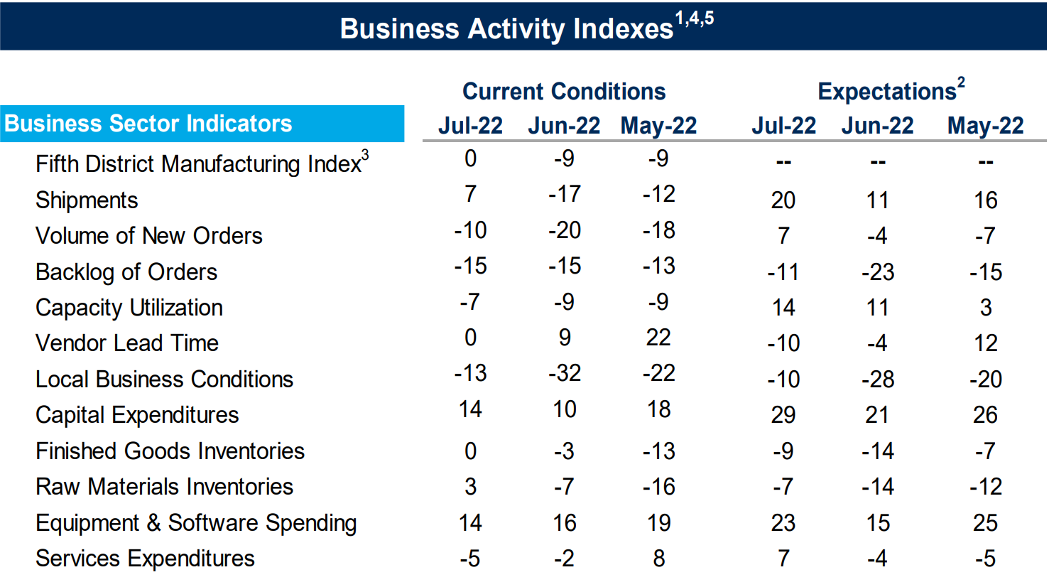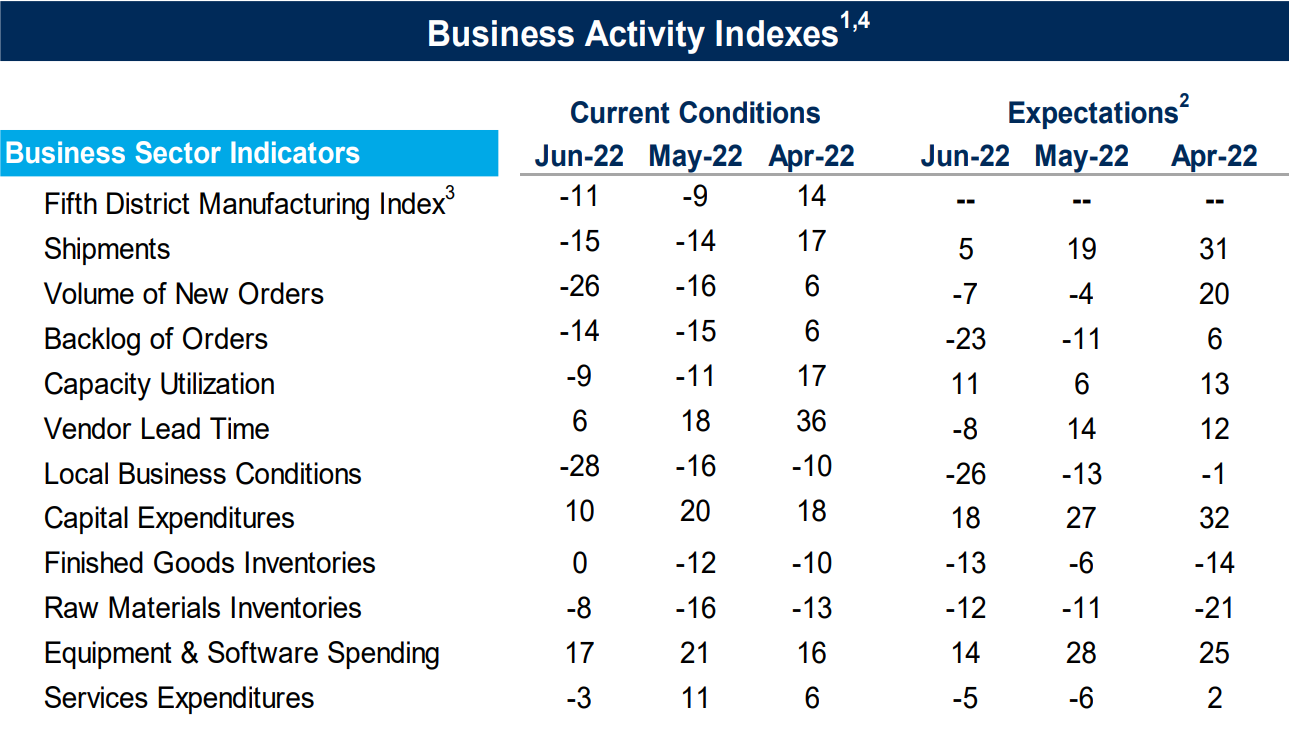 This was actually an improvement over the June survey, where 7 of the 11 indicators declined for the month.