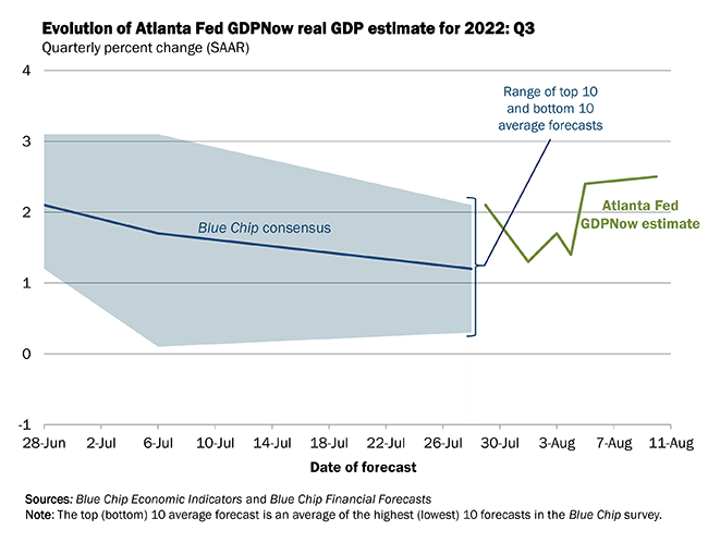 Certainly the Atlanta Federal Reserve’s GDPNow nowcasting tool, which as of its latest update projects a 2.5% growth rate for the third quarter, appears to echo the preferred Biden narrative.