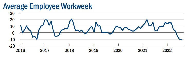 The average employee workweek dropped 17.4 percentage point.