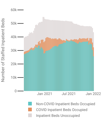 Even so, as of this writing, New York hospitals are reporting at 74% capacity, with 11,180 available inpatient beds and 6,630 COVID-19 beds. As I have discussed regarding other states, Governor Hochul is addressing a crisis that is not reflected in the data reported to HHS. Moreover, she is not addressing this crisis by working to expand hospital capacity, but merely to manipulate patient populations.
