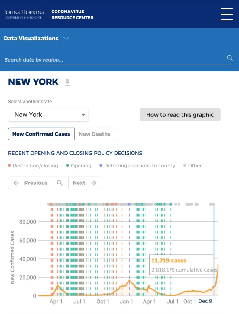 While New York stands as a poster child for the “official” policies for managing COVID-19 outbreaks, both its track record and the current surge in COVID-19 cases show New York to be the poster child for the failure of those policies. Regardless of the logic or intent of the policy, the outcome has never been a reduction in cases, but most frequently the opposite.