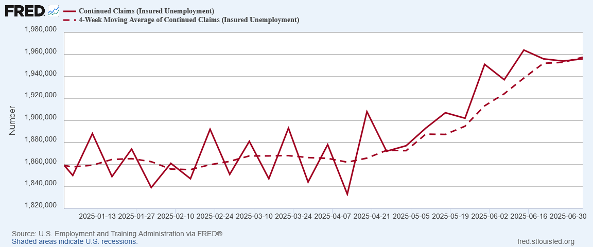 At the same time, continuing claims are at their highest level since November of 2021.